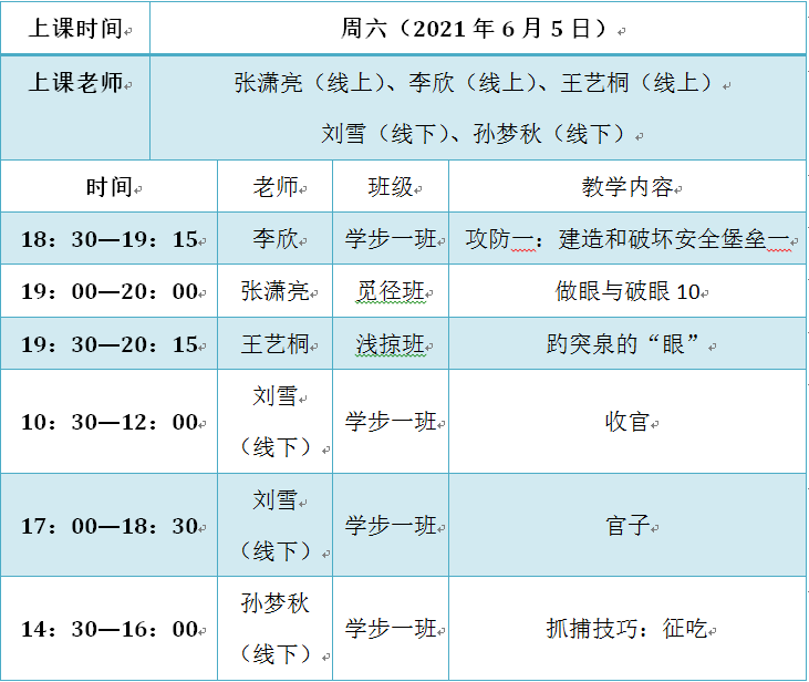 2021年6月5日課程預(yù)告